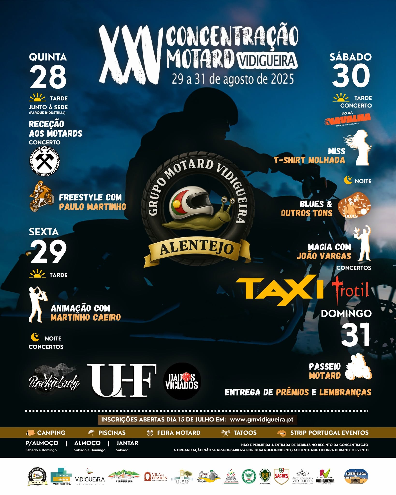 A 25ª Concentração Motard Vidigueira está aí!!! Este ano, realizar-se-á entre 29 e 31 de agosto. ver cartaz